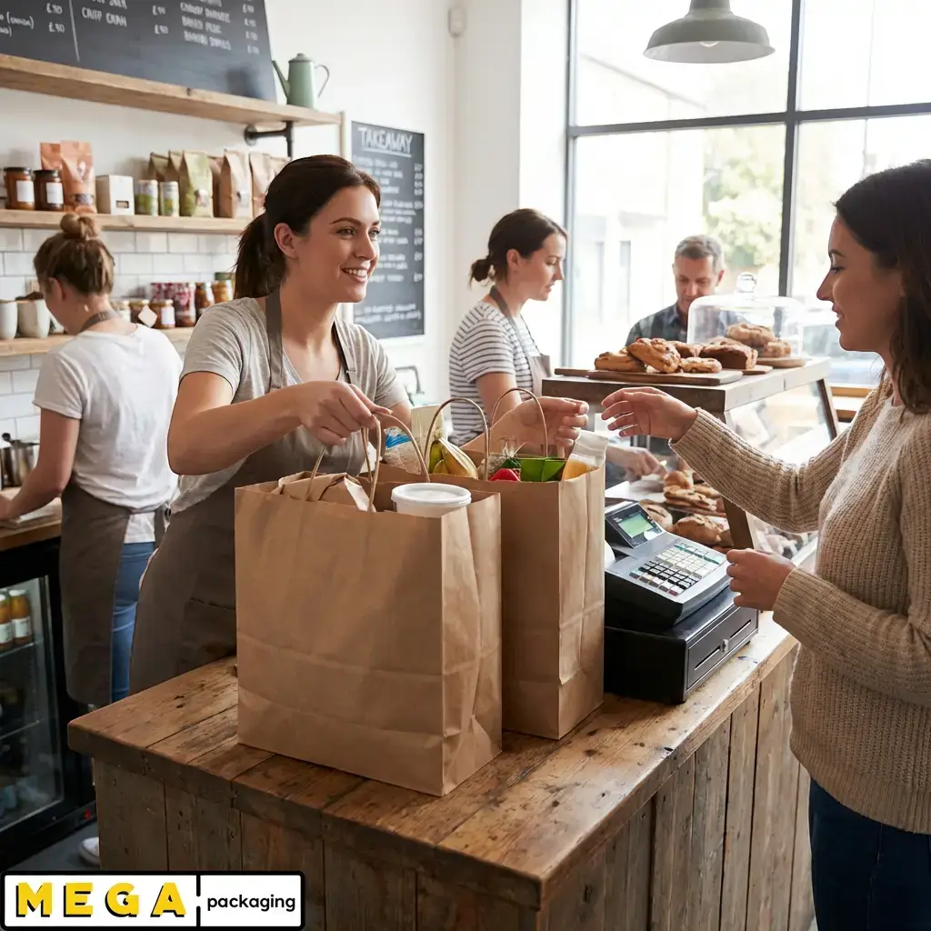 Food service businesses choose this extra-large option for substantial takeaway orders, delivery services, and catering applications. The 8-10kg weight capacity accommodates large food orders including multiple containers, family meals, party orders, and catering supplies. The kraft paper construction provides food-safe packaging that meets hygiene standards while the natural aesthetic aligns with artisanal food movements.
